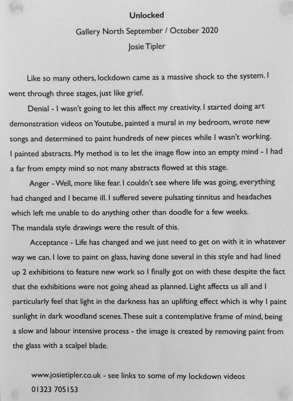 ‘UNLOCKED’ is an exhibition of paintings, photography, woodwork and ceramics by a selection of established artists from the South East.